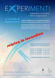 EXPERIMENTI A Scuola di Benessere. Quattro laboratori per la comunità educante di Tecnica di Comunicazione e Pratica Filosofica.